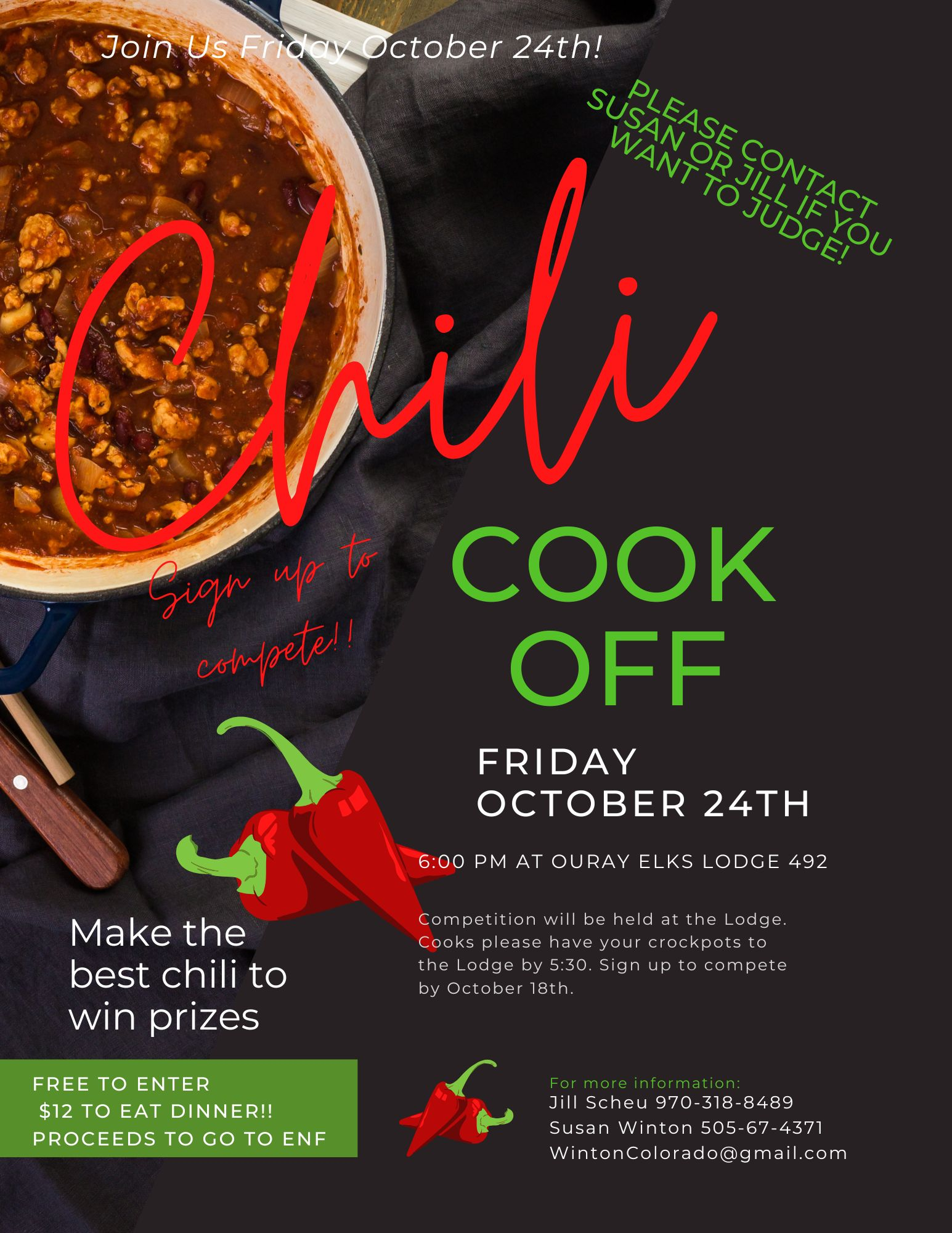 Chili Cook off ENF Fundraiser – Friday October 24th